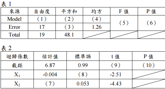 ⑶請將下兩表的空格從(1)至(10)計算後依序於試卷上寫出答案。(20 分)