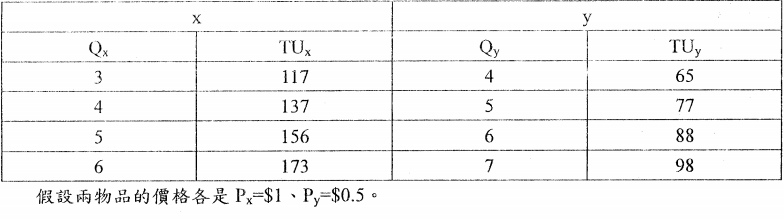 三、下表是美美消費x和y兩物品的數量和總效用•