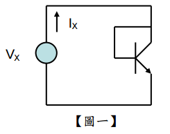 題目一: 假如將雙極性電晶體之集極與基極接在一起,如【圖一】所示。