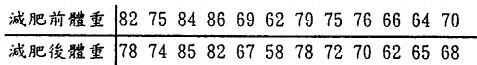 三、設隨機選取12位參與某次減肥活動者,在減肥前與減肥活動一個月後,分別量其體重,得 下列資料