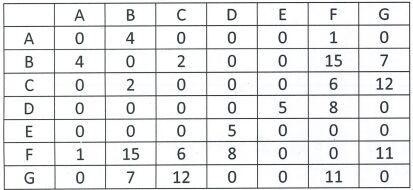 四.一個有權重無向圖,其相鄰矩陣表示如下,問: