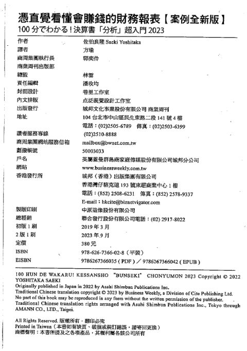 3. 憑直覺看懂會賺錢的財務報表相關說明資料ISBN 9786267366028平裝 2 版229 頁,有圖,高 22 公分書背有叢書名:藍學堂 185主題詞(lcstt):財務報表,財務分析 (參考用)