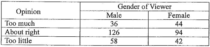 4. (15%) Four hundred members of a test panel were shown a preview of a film of a new musical to be released shortly. Each panel member was asked to indicate whether the amount of dancing in the film is too much, about right, or too little. The results, cross-classified by opinion and gender of viewer, were as follows: