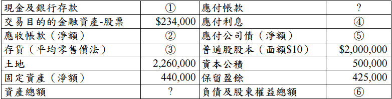 試求:(若有不整除,請一律四捨五入至小數點後第二位) 請計算鴻利公司 96 年底資產負債表中①~⑥的金額。(30 分)