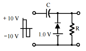 ⑴設右圖電路之二極體為矽二極體,若輸入 如圖所示之+10 V 至-10 V 的方波,試畫出 其輸出波形為何?(5 分)