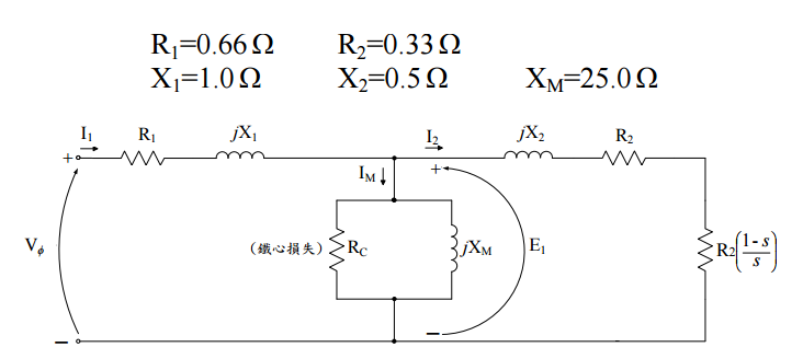 鐵心損失(core loss)可忽略不計,三相定子輸入電壓為: