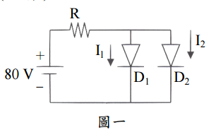 二極體的導通 電壓為 Vr=0.7 伏特,內電阻為 20 Ω。試求