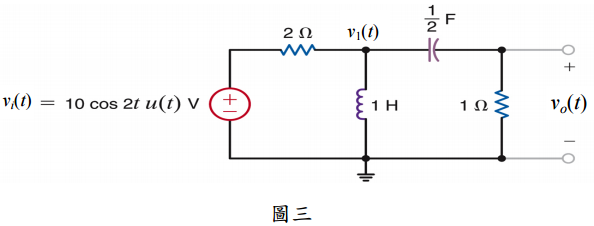 三、如圖三所示,如果 t = 0 時,電感之電流與電容之電壓均為零。試求: