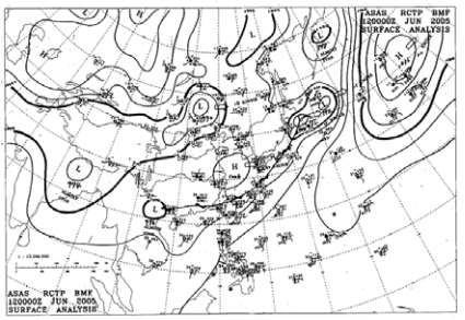 四、天氣圖是根據現況預報未來天氣最基本之資料。下面是常用的一種。