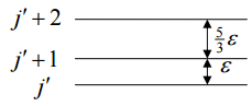 ⑵某一原子的能階間隔關係,如圖所示。請利用 Lande 間隔定則(Lande interval rule)訂定出這些能階所對應之量子數s ′、l′、j′。(8 分)