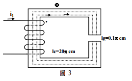 三、如圖 3 所示為一有氣隙之鐵心,鐵心的平均路徑為 20π cm,鐵心與氣隙的截面積為 100 cm