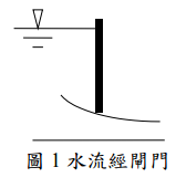 ⑵水流經一洩水閘門在一固定寬度的矩形水平渠道 如圖 1,假設為非黏滯流(inviscid flow),試以 比能圖描述其流況之水深。(15 分) 圖 1 水流經閘門 H P Gate O 圖 2. 1/4 圓弧形之水閘門 2 m A 圖 2 1/4 圓弧形之水閘門 2 m Gate H P P O A