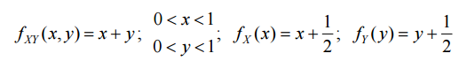 四、兩個隨機變數 X 與Y 之結合機率密度函數(joint probability density function)為