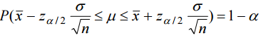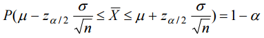 此方程式我們稱之為母群體平均值 μ 之 100(1-α)%信賴區間