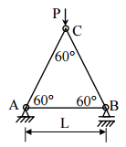 三、如圖所示之桁架,AB 桿長度= L,於 C 點承受一載重 P,假設 AE =常數。