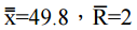 ,已知繪製管制圖時使用 的抽樣大小為 n = 2,而且產品的規格上下限為 50 ± 5。若已知產品的品質特性呈常態 分配,且查表可得以下各係數: