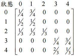 四、考慮下列馬可夫鏈的一步轉移矩陣: