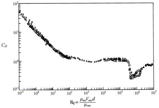 一、流體流經一二維圓柱截面,經實驗量測,阻力係數(Drag Coefficient)CD 與雷諾數 (Reynolds Number)R