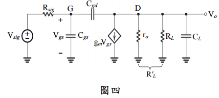 四、共源極放大器(common source amplifier)等效電路如圖四所示,其中C