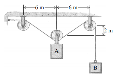 四、如圖所示,方塊 A 之質量為 30 kg,方塊 B 之質量為 20 kg,兩者由一纜繩相連。 若滑輪很小且質量可不計,試求兩方塊在以下兩種情況下之加速度和纜繩之張力,當: