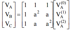 為 式中之運算子a =1∠120°;上標(0)、(1)、(2)分別代表零、正、負相序。