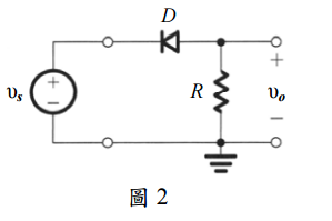 二、考慮圖 2 之半波整流器,令 υ