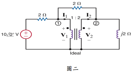 二、如圖二所示,設變壓器為理想,試求:(每小題 5 分,共 20 分)