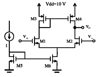 三、下圖為一差動放大電路,其電路參數為 I = 2 mA 、μ