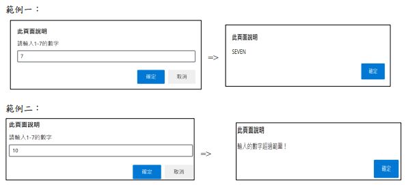 以 JavaScript 設計一網頁,使用者輸入 1 到 7 的數字,按下