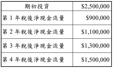 四、承上題,假設折現率是 10%,請以淨現值法(NPV)評估該投資案。(20 分)