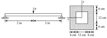 二、有一簡支梁斷面如下圖所示,此梁受一集中載重 P。如此梁之最大容 許剪應力