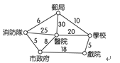 2.下圖為一個路線圖,其上的數字為一般車輛行駛該路段所需的平均時間(單位:分)。請問: