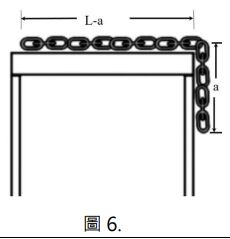 如圖 6,一固定長度 L 及單位長度質量 w 之可以撓曲鏈條,如圖鏈條長度(L-a)置於一無摩擦之桌面時,鏈條開始往下掉,試計算鏈條完全離開桌面瞬間之速度。