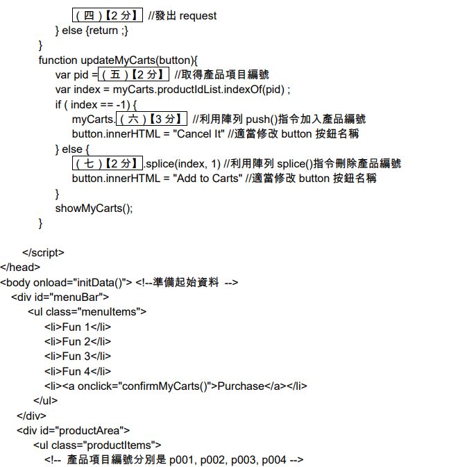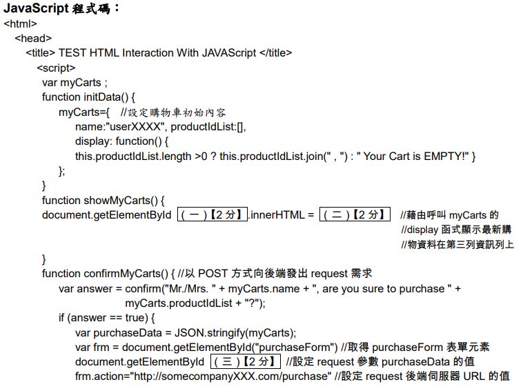 JavaScript 指令),以顯示具備上述功能的網頁。(請使用符合 W3C 標準的 JavaScript 指令,