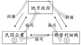 3.請參考下圖(一),並回答以下問題。「文林苑都更案」原是地方政府藉由與甲之間的合作, 以有效提供公共服務並解決公共問題的乙。