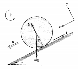 5.下圖爲一質量M半徑R的球由一斜坡上只滾不滑而下,斜坡的傾斜角度爲…其對中心 軸的轉動慣量爲(2/5)MR
