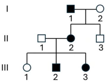 一、下圖顯示一種罕見遺傳疾病的譜系,請回答:(每小題 5 分,共 15 分) (譜系中方形代表男性,圓形代表女性;得病個體以黑色標示)