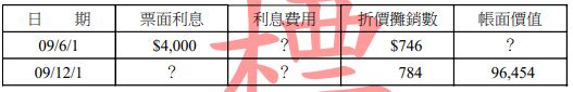 3. 芬園公司08年12月1日發行面額$100,000,五年期公司債,每年6月1日及12月1日為付息 日,折價採利息法攤銷,其攤銷表如下: