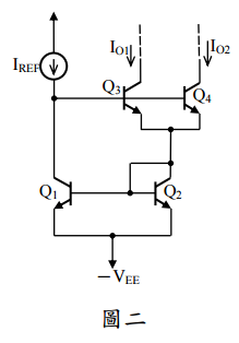 = 7 mA,請仿照圖二之作法設計出可以同時輸出 1 mA、2 mA 與 4 mA 之 電路。若β = 50,則該三組輸出電流之實際大小為何?(10 分)
