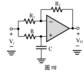 (1)圖四使用理想之運算放大器,請推導其轉換函數 V