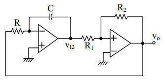 三、如下圖所示為一由兩個理想OP放大器所構成的多諧振盪器。右邊的OP放大器電路 構成一個比較器。OP放大器的輸出電壓範圍為±V