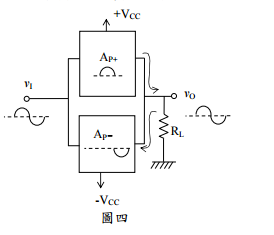 分別為理想正半週與負半週信號放大電 路,假設無交叉失真(crossover distortion),當 v