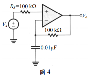 四、圖 4 中運算放大器之開迴路增益為 10