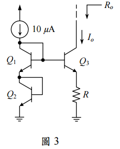四、如圖 3 所示之偏壓電流源電路,假設電晶體β參數相當高,所有電晶體當集極電流 為 1 mA時,基射電壓V