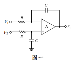 一、圖一電路中,若 OP 的增益 A=∞,試求: