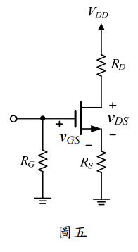 五、圖五電路中,已知MOSFET工作在飽和區(Saturation region),其臨界電壓為 V