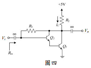 四、如圖四所示電路,已知特性匹配的兩個電晶體 (Q