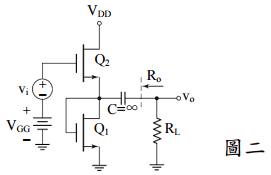 二、如圖二所示為兩個相等的 NMOSFET Q