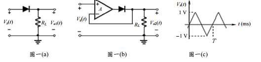 一、圖一(a)與圖一(b)中,RL = 1 k Ω ,二極體導通時跨壓為 0.7 V,運算放大器之開路增 益 Av = 1000 V/V,兩元件之其他特性均為理想。V