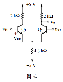 三、圖三為一個差動放大器電路,在室溫 25℃時,V